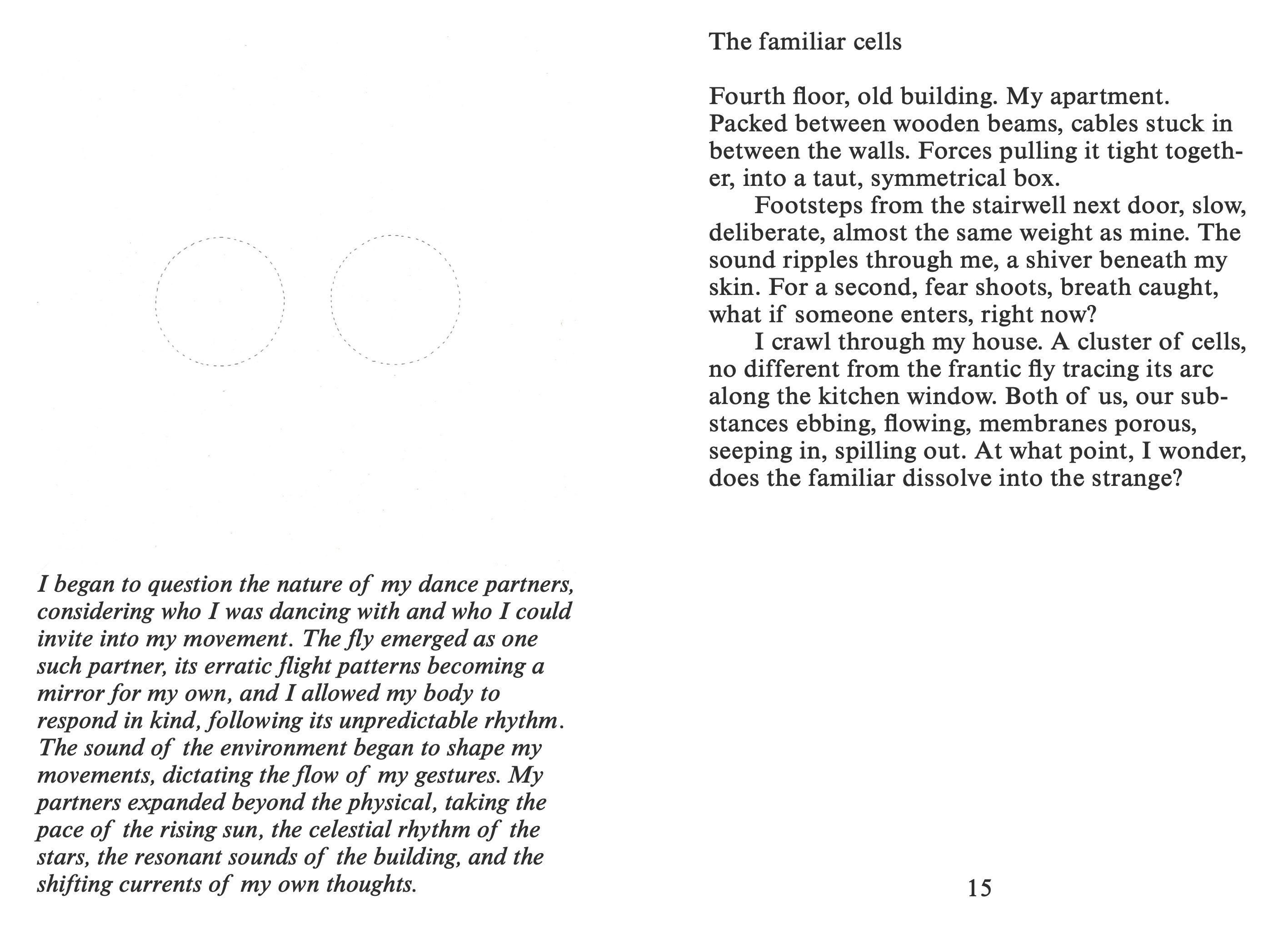 A practice of attunement, of sensing from the periphery. Where movement is not imposed but emerges